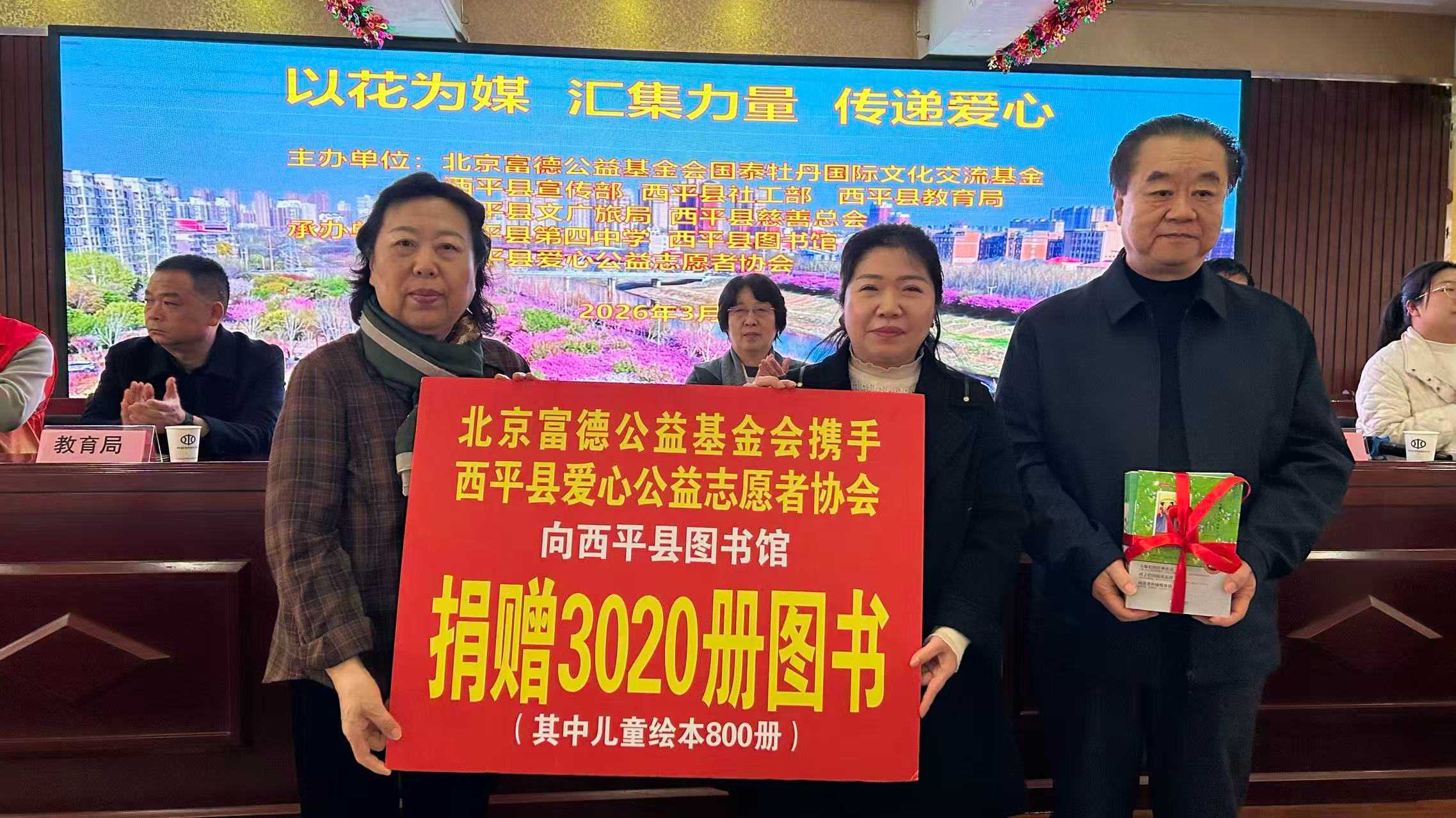 4月26日,一场充满书香与温情的捐赠活动在西平县第四中学举行。由北京富德公益基金会携手西平县慈善总会、西平县爱心公益志愿者协会共同主办的“2026北京富德公益基金会向西平县书馆捐赠图书活动”圆满落幕。3020册崭新的图书,总价值6万余元,为当地青少年送去宝贵的精神食粮。